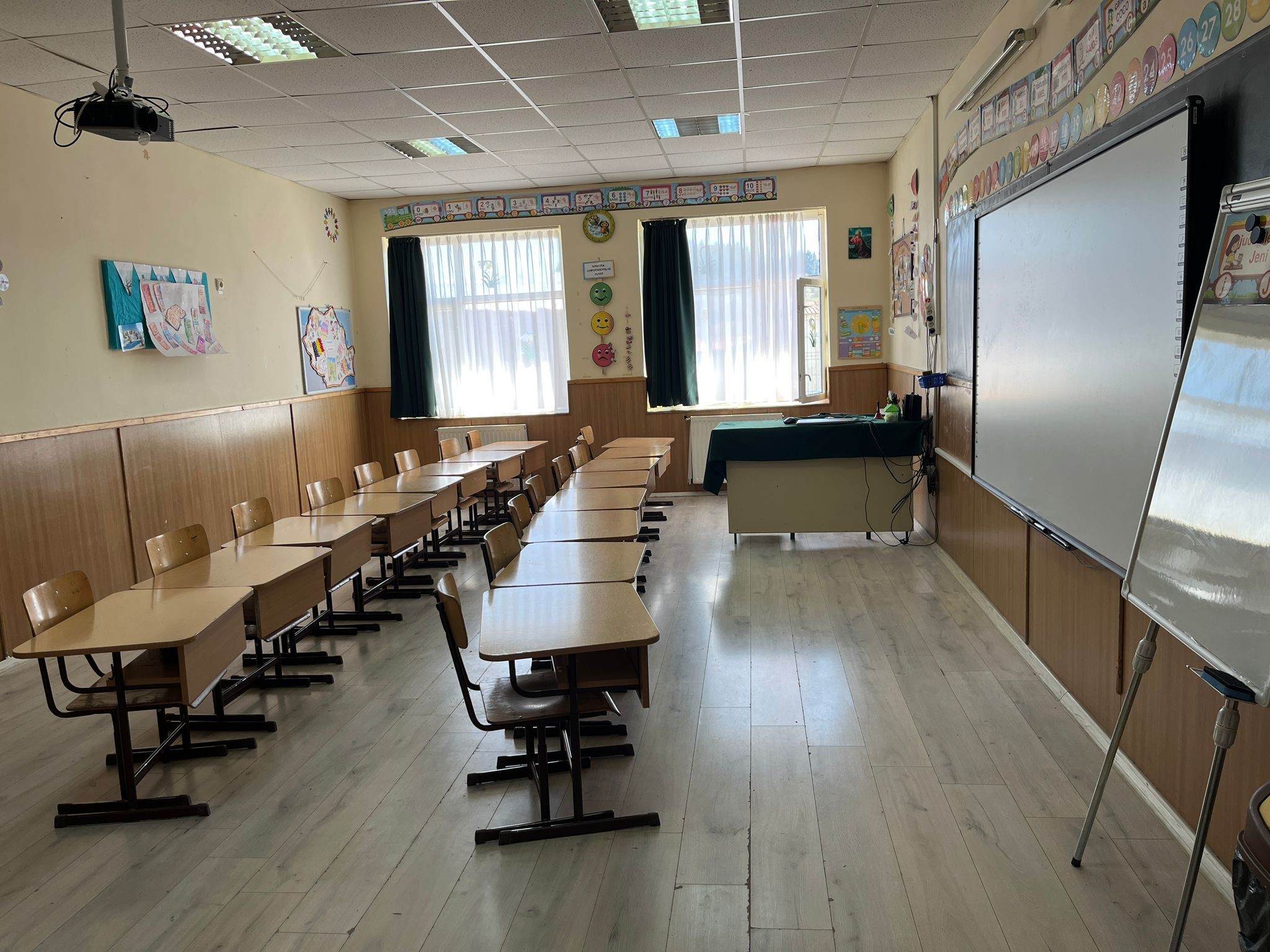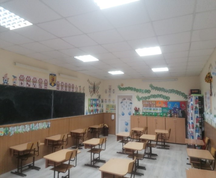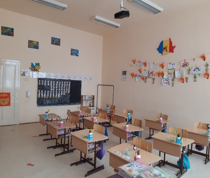 Copiii invata intr-un spatiu luminos, curat, decorat cu material atractiv si cu lucrarile elevilor. Mobilierul este specific varstei , sala este dotata cu mocheta pentru intalnirea de dimineata si cercul povestilor.